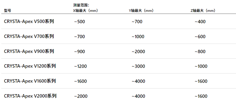 CRYSTA-Apex V系列采用彰显先进性和创造性的焕新设计,提供可应对小型到大型工件测量的丰富产品阵容。